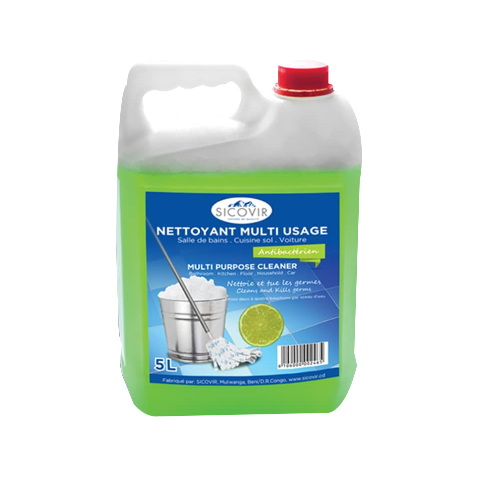 Le détergent liquide multi usage utilisé pour l’entretien ménager, nettoie et tue les germes. Il constitue ainsi votre meilleur choix pour l’entretien de votre maison : votre salle de bain, le sol de toutes les pièces de votre maison, et pour le lavage de votre véhicule. Il assure que votre maison, votre véhicule soient toujours propres et parfumés. Disponible en 5 litres.